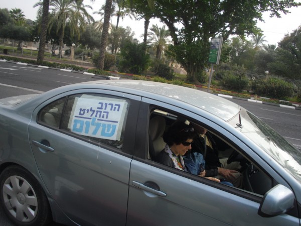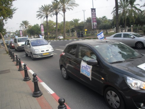Le 14 février, les ONG (Organisations Nons Gouvernementales) israéliennes du «camp de la paix» ont organisé des «cortèges de voitures pour la paix». Partis du Nord et du Sud d’Israël ainsi que de Jérusalem, plusieurs centaines de véhicules ont pris part à ce rallye, et plus de 150 automobiles ont finalement parcouru les principaux axes de Tel-Aviv, étape ultime de la mobilisation.